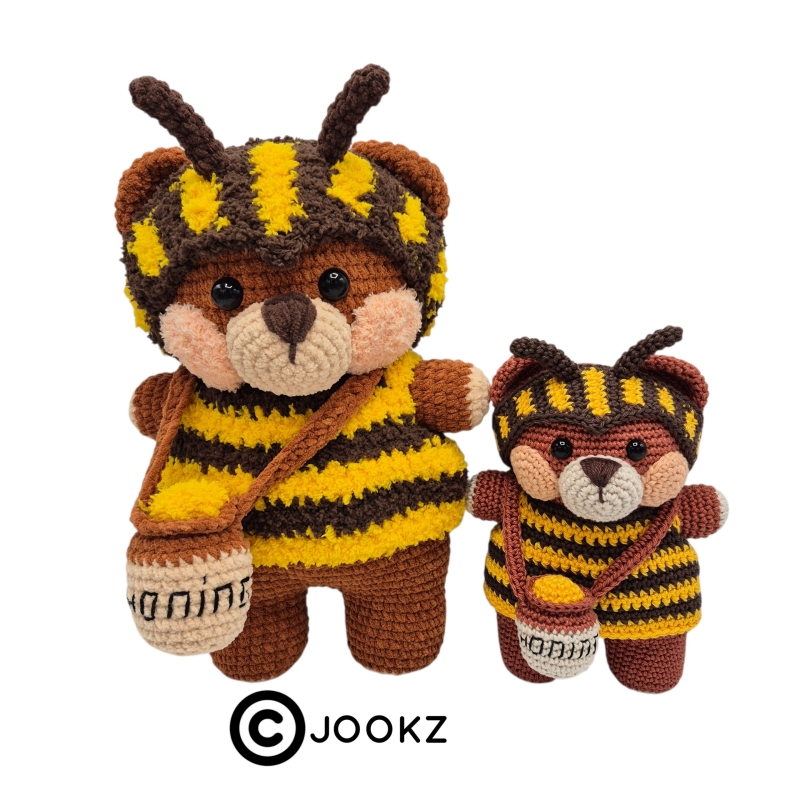 In het patroon staat zowel de beschrijving voor de grote gehaakt met Velvet als de kleine gehaakt met katoen. De grote wordt ongeveer 27 cm en de kleine ongeveer 17 cm.