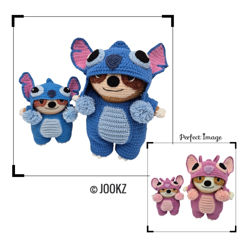 In het patroon staat zowel de beschrijving voor de grote luiaards gehaakt met Velvet als de kleine gehaakt met katoen. De grote wordt ongeveer 27 cm en de kleine ongeveer 17 cm.